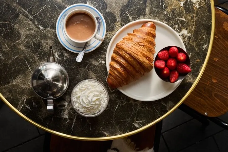 שוקו חם וקצפת, גביע תותים וקרואסון חמאה ענק- 79 שקלים