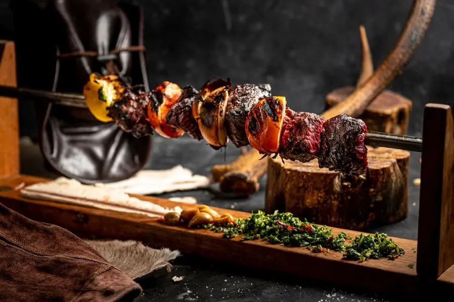 נתחי אסאדו מהמעשנה, מוגשים על גריל אישי בוער בעיטור צ'ימצ'ורי וקונפי שום. (מנה לסועד 40 שקלים); (מנה לזוג 80 שקלים מנה לרביעייה (140 שקלים)